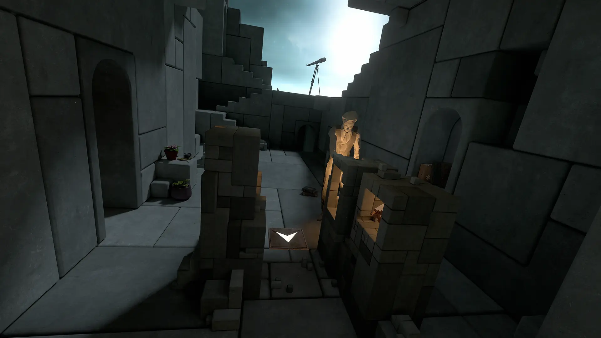 The player is blocked from continuing in the interior of the plinth